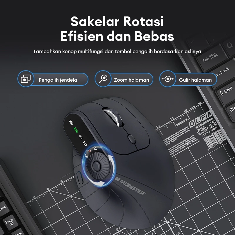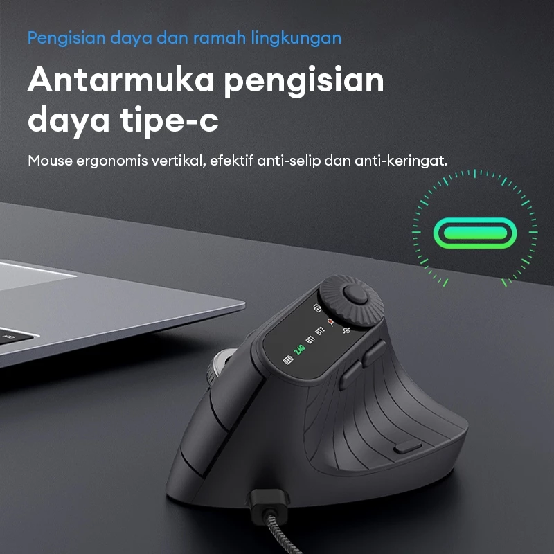 • Desain ergonomis vertikal, nyaman untuk tangan