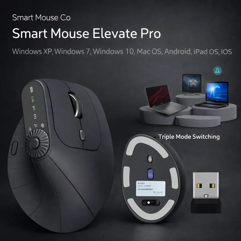 1.Mouse ergonomis vertikal 8D, desain permukaan seperti kulit, terasa halus dan nyaman,